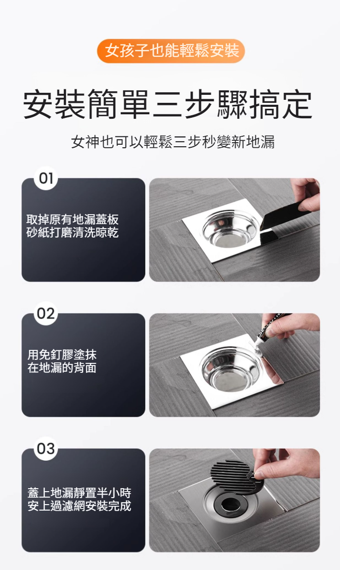 不鏽鋼地漏防臭翻新貼內芯下水神器浴室陽台通用排水管防蟲防溢水